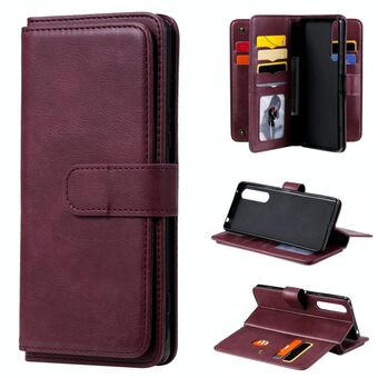 Για Sony Xpeira 1 II Πολυλειτουργική μαγνητική χάλκινη πόρπη οριζόντια Flip αμιγούς χρώματος δερμάτινη θήκη με 10 υποδοχές για κάρτες & πορτοφόλι & θήκη & κορνίζα φωτογραφιών (κόκκινο κρασί)