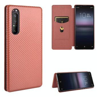 Για Sony Xperia 1 II Carbon Fiber Texture Horizontal Flip TPU + PC + PU Leather Case με υποδοχή κάρτας (καφέ)