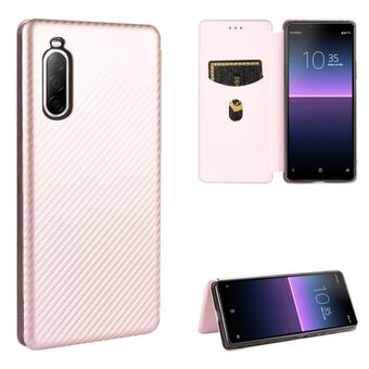 Για Sony Xperia 10 II Carbon Fiber Texture Horizontal Flip TPU + PC + PU Leather Case με υποδοχή κάρτας (ροζ)