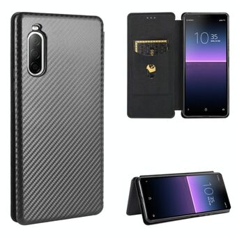 Για Sony Xperia 10 II Carbon Fiber Texture Horizontal Flip TPU + PC + PU Leather Case με υποδοχή κάρτας (μαύρο)