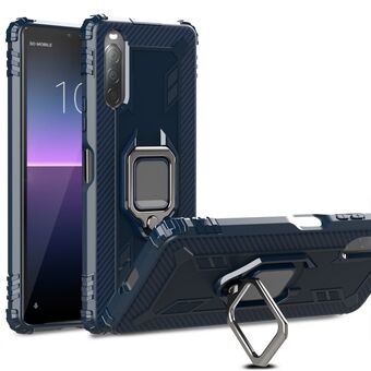 Για Sony Xperia 10 II Προστατευτική θήκη από ανθρακονήματα με περιστρεφόμενο δακτύλιο 360 μοιρών (μπλε)
