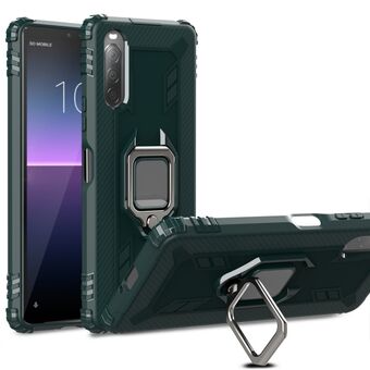 Για Sony Xperia 10 II Προστατευτική θήκη από ανθρακονήματα με περιστρεφόμενο δακτύλιο 360 μοιρών (πράσινο)