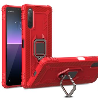 Για Sony Xperia 10 II Θήκη προστασίας από ανθρακονήματα με περιστρεφόμενο δακτύλιο 360 μοιρών (κόκκινο)