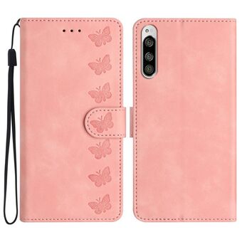 For Sony Xperia 10 Seven Butterflies Embossed Leather Phone Case(Pink)