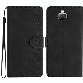For Sony Xperia 10 Seven Butterflies Embossed Leather Phone Case(Black)
