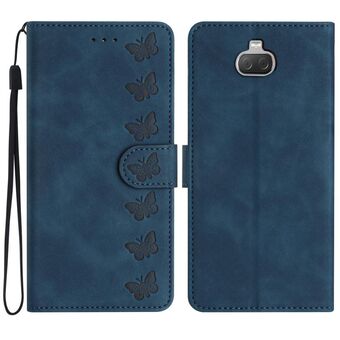 For Sony Xperia 10 Seven Butterflies Embossed Leather Phone Case(Blue)