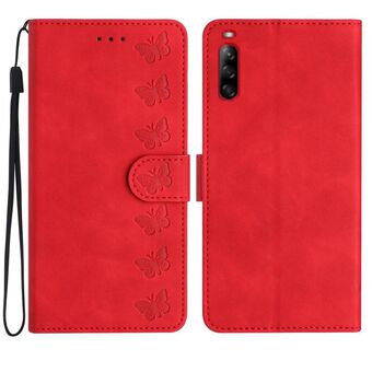 For Sony Xperia 10 Seven Butterflies Embossed Leather Phone Case(Red)