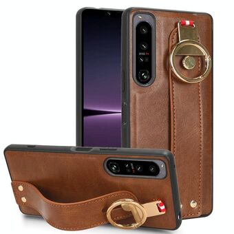 For Sony Xperia 1 IV Wristband Leather Back Phone Case(Brown)