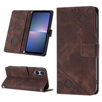 Για Sony Xperia 5 V Skin-feel ανάγλυφη δερμάτινη θήκη τηλεφώνου (καφέ)