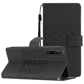 For Sony Xperia 1 V Diamond Embossed Skin Feel Leather Phone Case with Lanyard(Black)