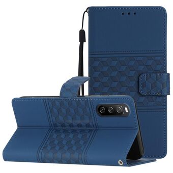 For Sony Xperia 10 V 2023 Diamond Embossed Skin Feel Leather Phone Case with Lanyard(Blue)