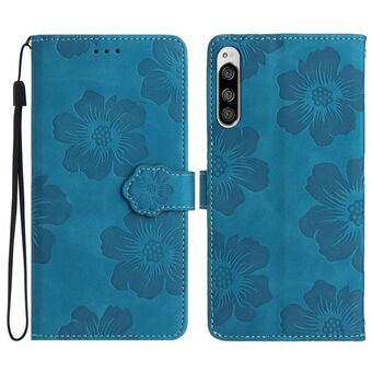 For Sony Xperia 10 IV Flower Embossing Pattern Leather Phone Case(Blue)