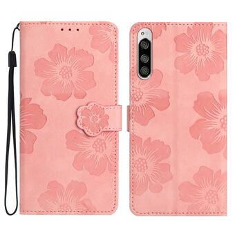 For Sony Xperia 5 Flower Embossing Pattern Leather Phone Case(Pink)