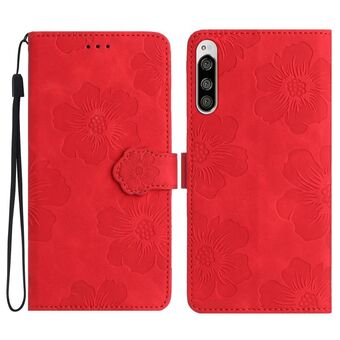 For Sony Xperia 10 V Flower Embossing Pattern Leather Phone Case(Red)
