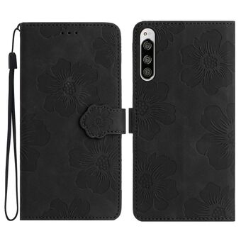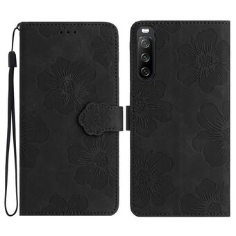 For Sony Xperia 10 IV Flower Embossing Pattern Leather Phone Case(Black)