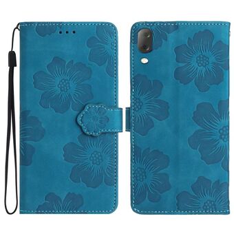 For Sony Xperia 10 V HT04 Skin Feel Sun Flower Embossed Flip Leather Phone Case with Lanyard(Inky Blue)