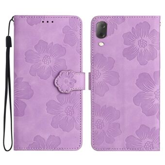 For Sony Xperia 10 V HT04 Skin Feel Sun Flower Embossed Flip Leather Phone Case with Lanyard(Purple)