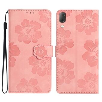 For Sony Xperia 10 V HT04 Skin Feel Sun Flower Embossed Flip Leather Phone Case with Lanyard(Pink)
