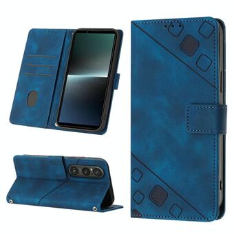 For Sony Xperia 1 V Skin-feel Embossed Leather Phone Case(Blue)