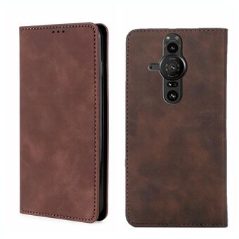 For Sony Xperia Pro-I Skin Feel Magnetic Horizontal Flip Leather Phone Case(Dark Brown)