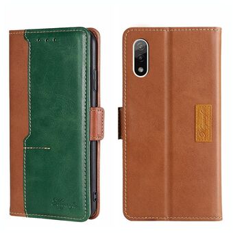 For Sony Xperia ACE II Contrast Color Side Buckle Leather Phone Case(Light Brown + Green)
