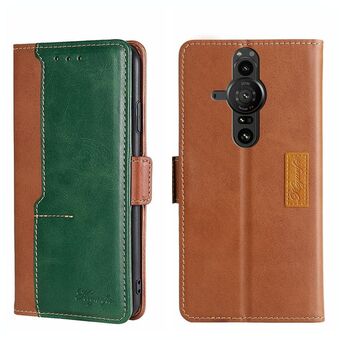 For Sony Xperia Pro-I Contrast Color Side Buckle Leather Phone Case(Light Brown + Green)