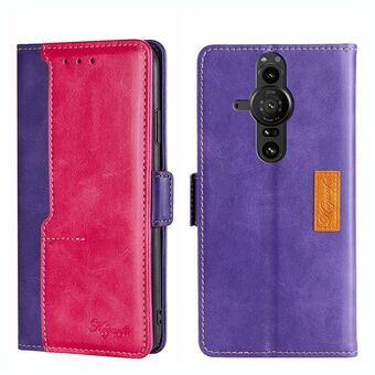For Sony Xperia Pro-I Contrast Color Side Buckle Leather Phone Case(Purple + Rose Red)