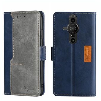 For Sony Xperia Pro-I Contrast Color Side Buckle Leather Phone Case(Blue + Grey)