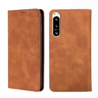 For Sony Xperia 5 IV Skin Feel Magnetic Horizontal Flip Leather Phone Case(Light Brown)