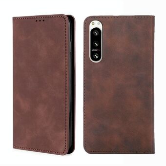 For Sony Xperia 5 IV Skin Feel Magnetic Horizontal Flip Leather Phone Case(Dark Brown)