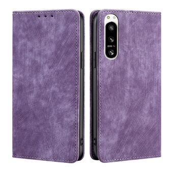 For Sony Xperia 5 IV RFID Anti-theft Brush Magnetic Leather Phone Case(Purple)