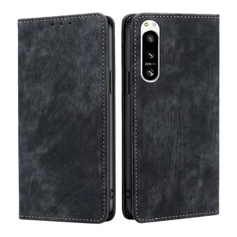 For Sony Xperia 5 IV RFID Anti-theft Brush Magnetic Leather Phone Case(Black)