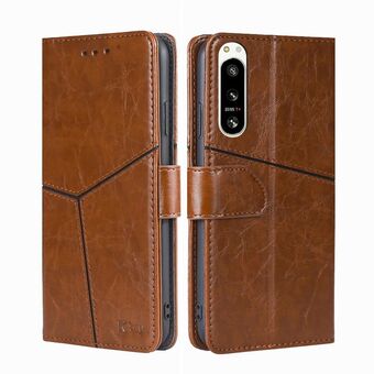 For Sony Xperia 5 IV Geometric Stitching Leather Phone Case(Light Brown)