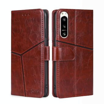For Sony Xperia 5 IV Geometric Stitching Leather Phone Case(Dark Brown)