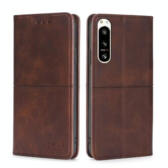 For Sony Xperia 5 IV Cow Texture Magnetic Horizontal Flip Leather Phone Case(Dark Brown)
