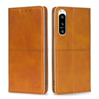 For Sony Xperia 5 IV Cow Texture Magnetic Horizontal Flip Leather Phone Case(Light Brown)