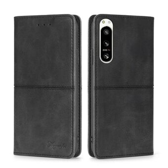 For Sony Xperia 5 IV Two-color Cowhide Texture PU Shockproof Phone Case(Black)