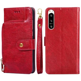 For Sony Xperia 5 IV Zipper Bag Flip Leather Phone Case(Red)