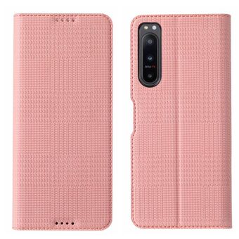 For Sony Xperia 5 IV Twill Texture Side Buckle Leather Phone Case(Pink)