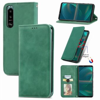 For Sony Xperia 5 IV Retro Skin Feel Magnetic Leather Phone Case(Blue)