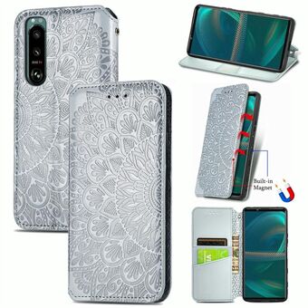 For Sony Xperia 5 IV Blooming Mandala Embossed Magnetic Leather Phone Case(Gray)