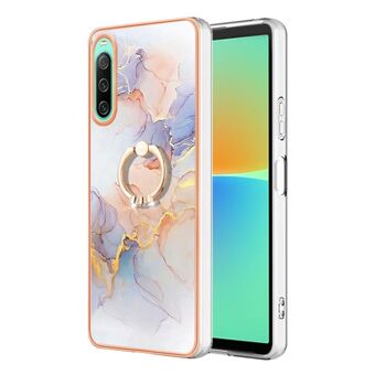 For Sony Xperia 10 IV Electroplating IMD TPU Phone Case with Ring(White Marble)