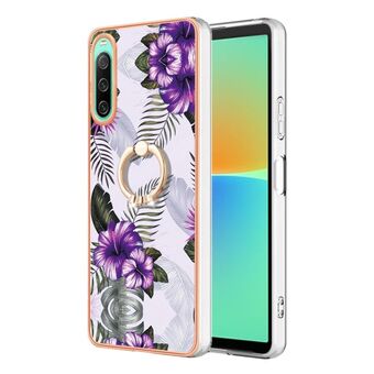 For Sony Xperia 10 IV Electroplating IMD TPU Phone Case with Ring(Purple Flower)