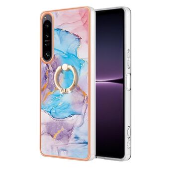 For Sony Xperia 1 IV Electroplating IMD TPU Phone Case with Ring(Blue Marble)