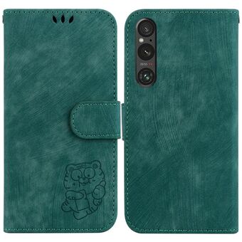 For Sony Xperia 1 V Little Tiger Embossed Leather Phone Case(Green)