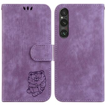 For Sony Xperia 1 V Little Tiger Embossed Leather Phone Case(Purple)