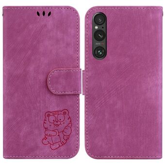 For Sony Xperia 1 V Little Tiger Embossed Leather Phone Case(Rose Red)