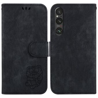 For Sony Xperia 1 V Little Tiger Embossed Leather Phone Case(Black)