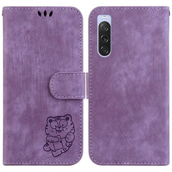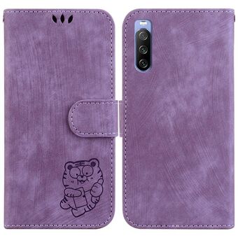 For Sony Xperia 10 III Little Tiger Embossed Leather Phone Case(Purple)