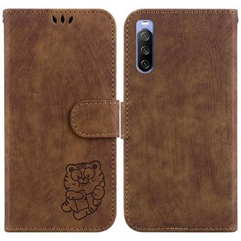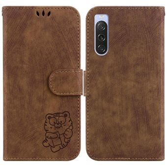 For Sony Xperia 10 III Little Tiger Embossed Leather Phone Case(Brown)